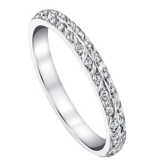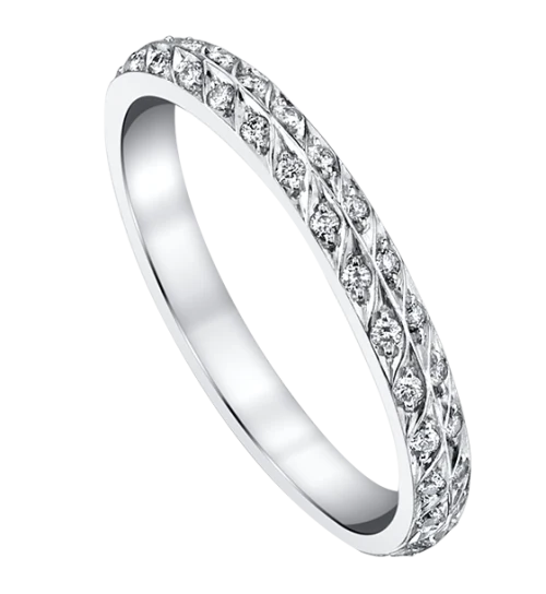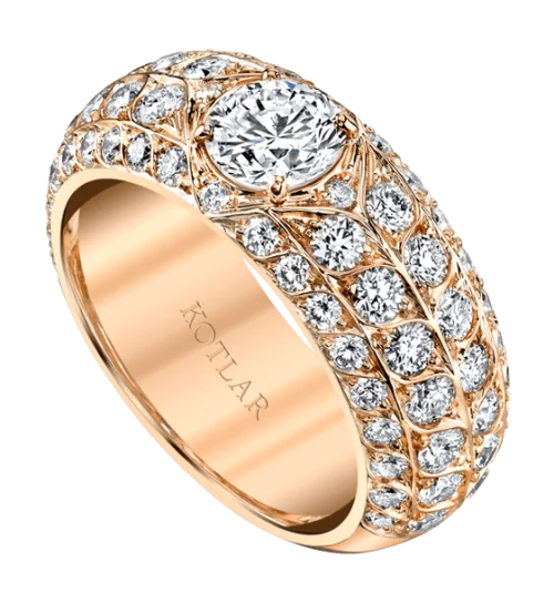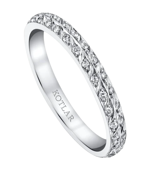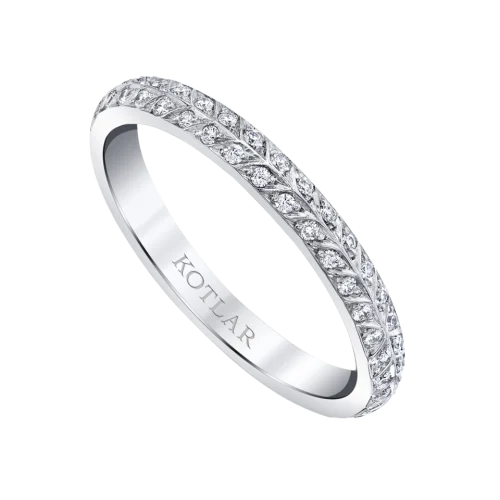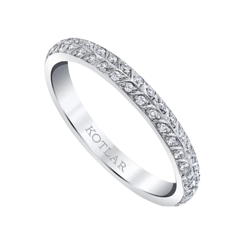 <p>Precious diamonettes blossom through hand-carved chevron motif in this Harry Kotlar band. Truly a statement that radiates sophistication.  </p>
