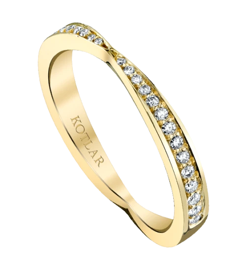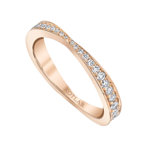 <p>A polished look for the modern woman is a sleek single taper of fine diamonds arranged in a willowy band in Rose Gold metal. Such Harry Kotlar classic beauty is always eye-catching and lovely.</p>