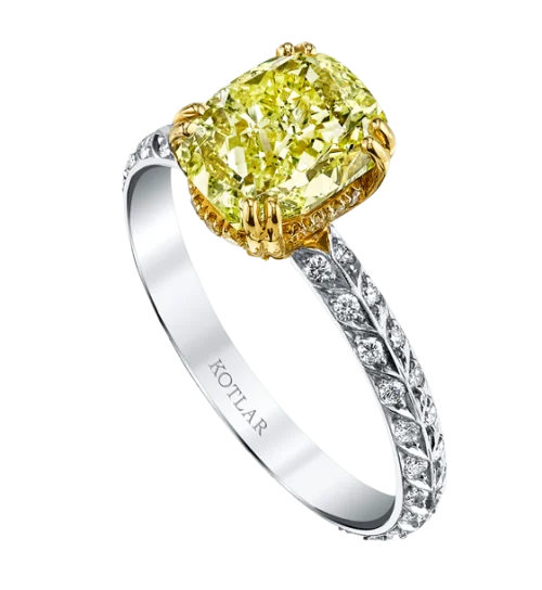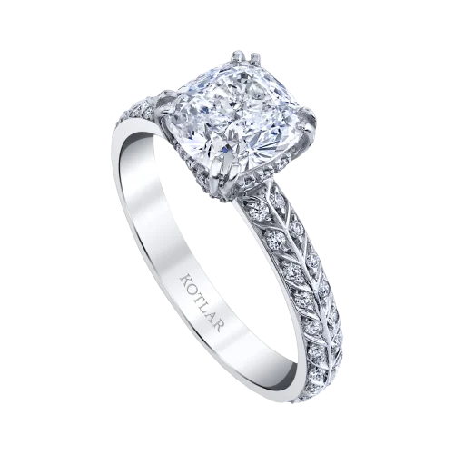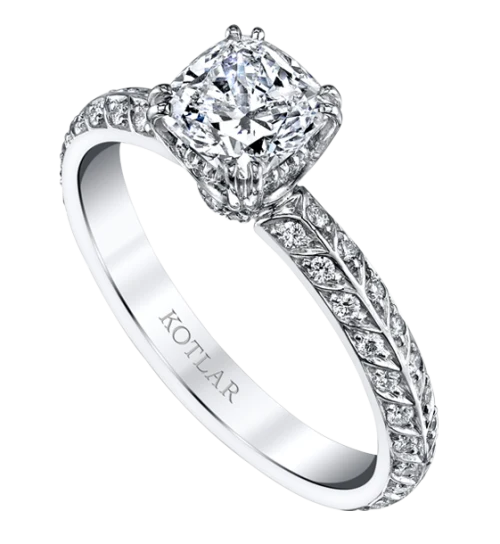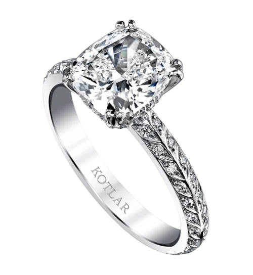 <p>A strong statement to confess any feelings of love, joy and inspiration. The richness of this 1.67 carat solitaire round brilliant diamond exactly says that. Framed gorgeously in platinum, the Harry Kotlar band is paved with a double row of diamonds in chevron pattern. Such a beautiful ring to behold.</p>