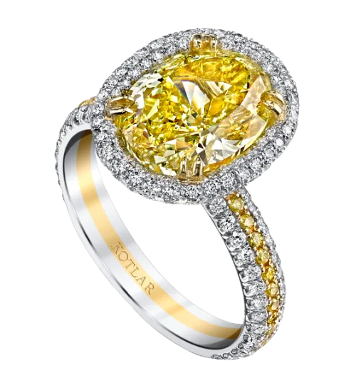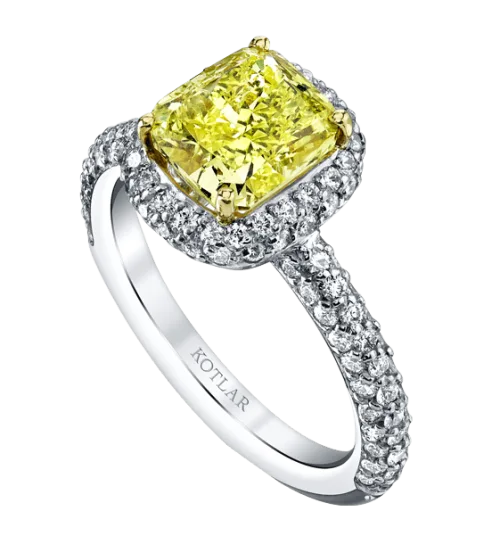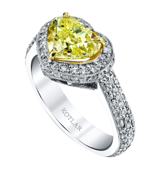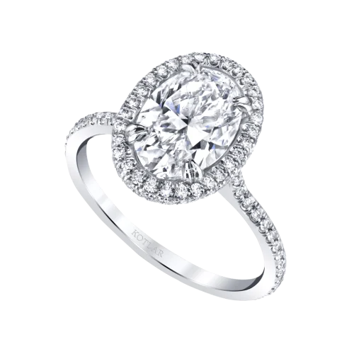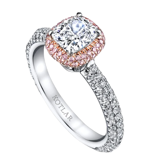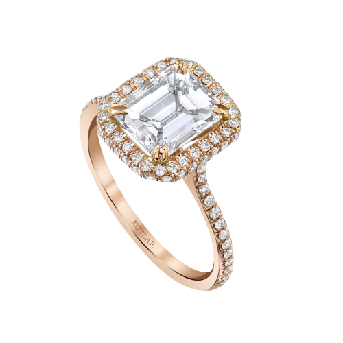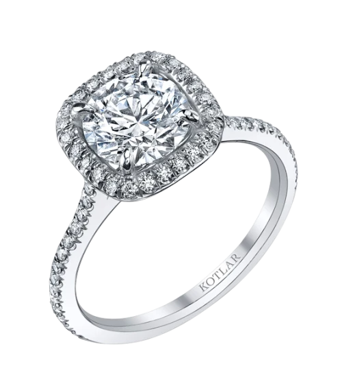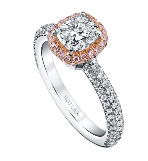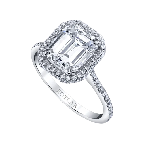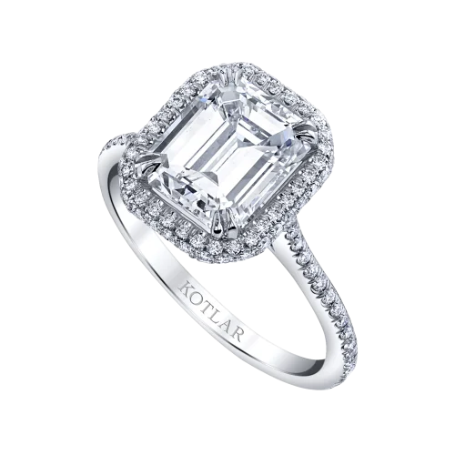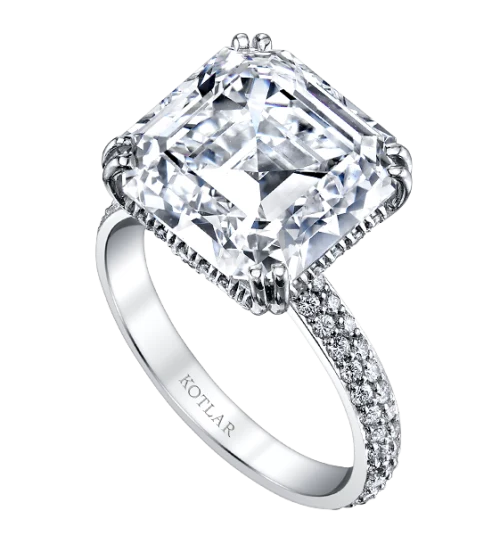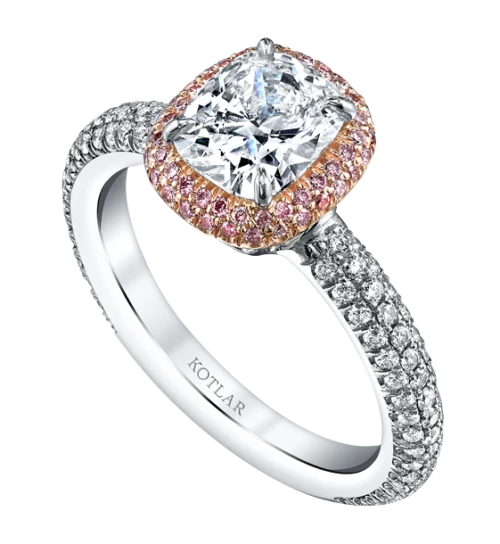 <p>Delicate micro pave wraps around a split wire Harry Kotlar platinum band to showcase a round brilliant diamond backed with layers of micro pave for extra twinkle power.</p>