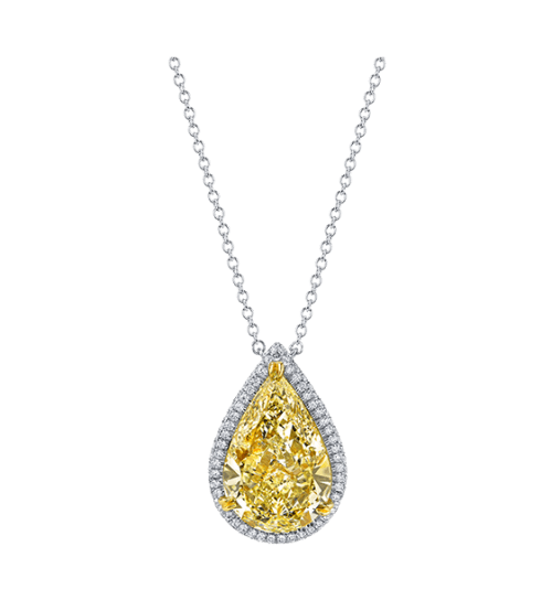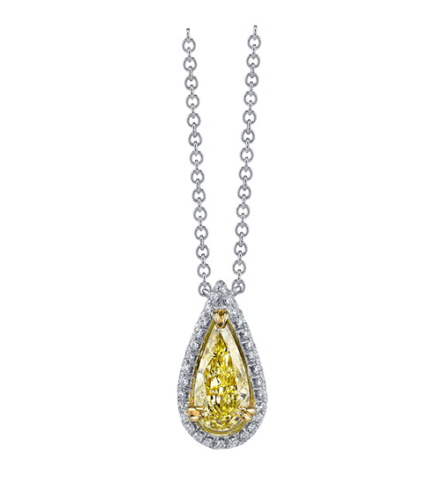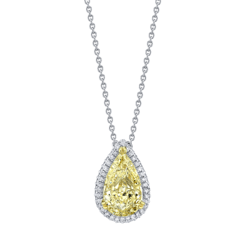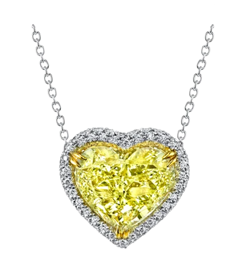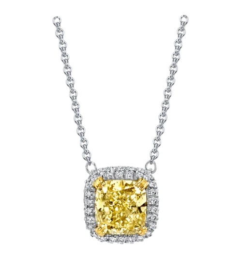 <p>A stunning Fancy Yellow Kotlar Cushion diamond pendant for the love of your life. This Kotlar Cushion diamond surrounded by hearts and arrow diamonds that sparkle from across the room.</p>