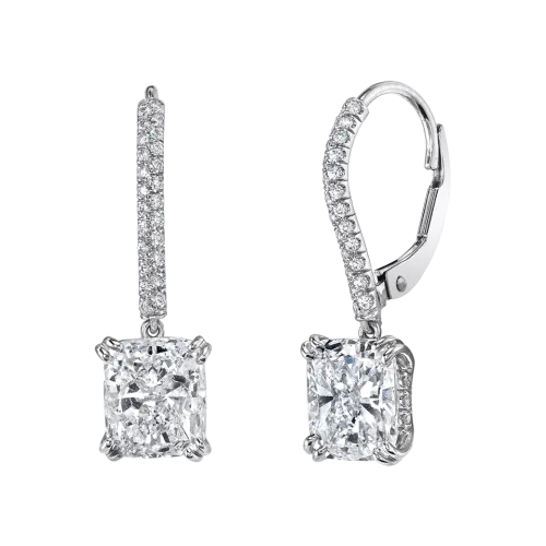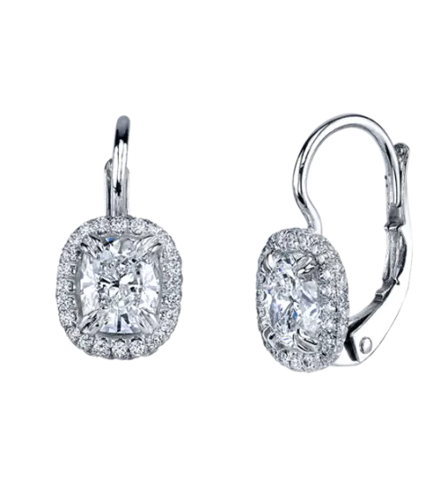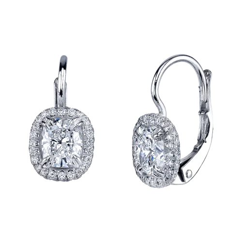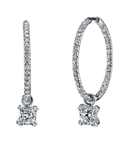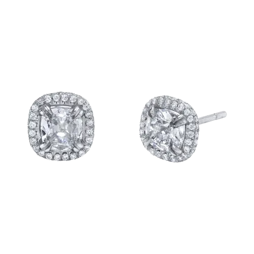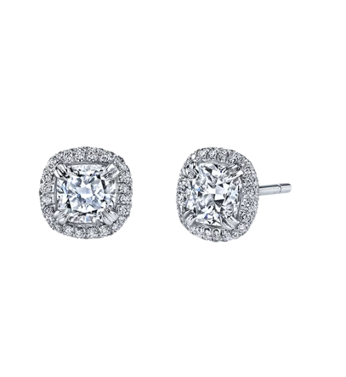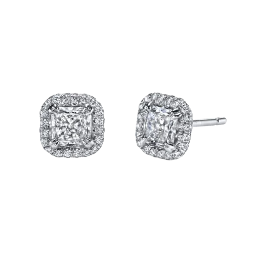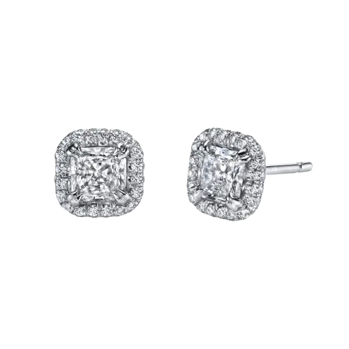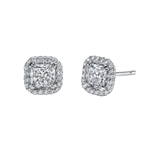 <p>Luxuriate in Harry Kotlar's extravagant twist on the classic stud earring. Sparkling melees frame a flawless asscher cut center diamond, displaying Harry Kotlar's modern style with the signature Kotlar Old-World nod.</p>