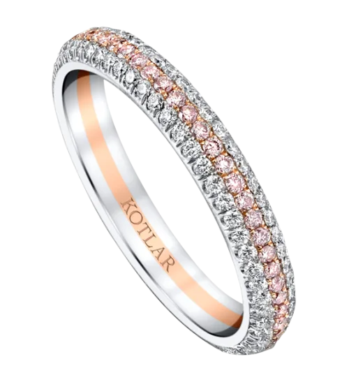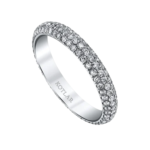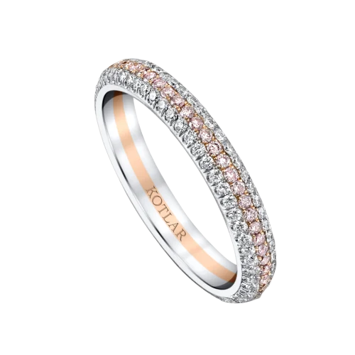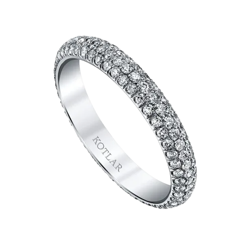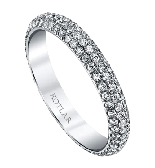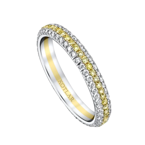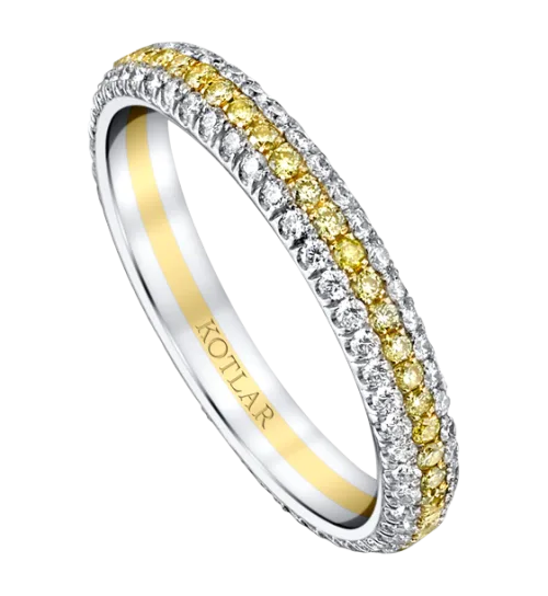 <p>Simple and elegant, this pave band is surrounded by sparkling diamonds that twinkle from every angle with a touch of sunny diamonds on the center</p>