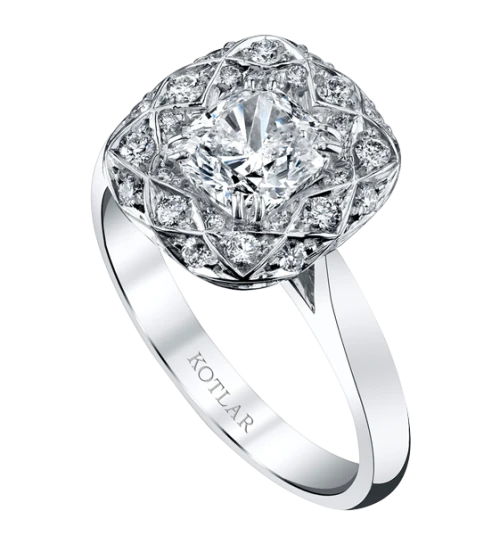 <p>This lovely and luxurious Harry Kotlar ring features a 0.72 carat round brilliant solitaire diamond highlighted by a crisscross pattern studded with delicate gleaming diamonds. Fashioned in an 18 karat rose gold setting, this luxuriously captivating ring surely boasts of true beauty and timeless appeal.</p>