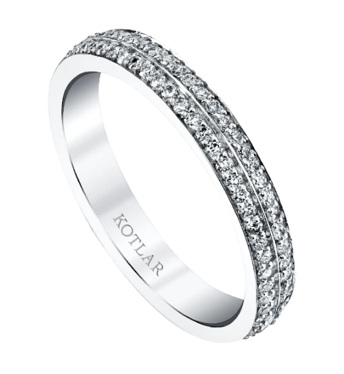 <p>With this Kotlar wedding band two become one through the spectacular diamond 2 row pave harmonie band.</p>