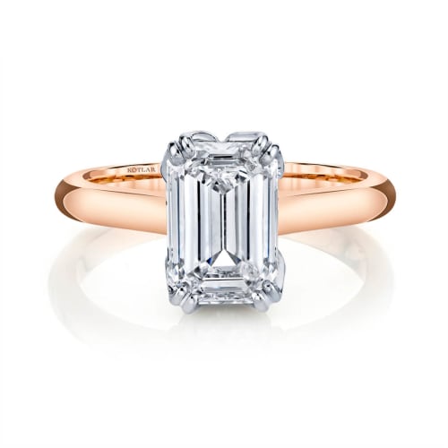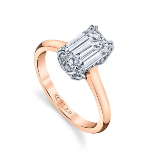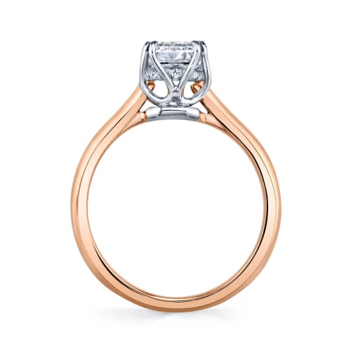 A fusion of rose gold and platinum combined with an old-world art of shaping platinum wires with diamond accents around the gallery. Simply sophisticated.