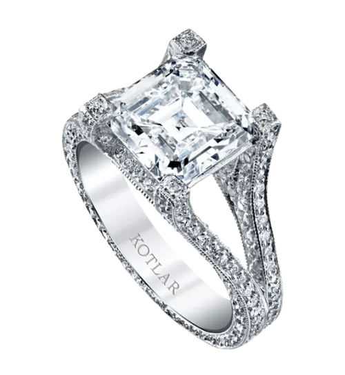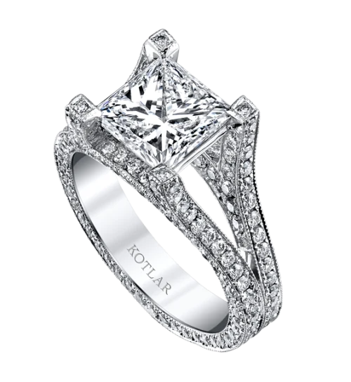 <p>This mesmerizing Harry Kotlar ring has detailed pave from all angles, which ultimately unify in the stunning center stone.</p>