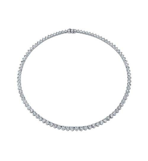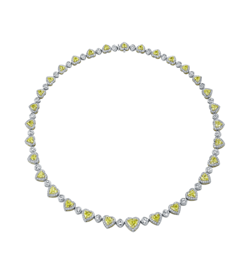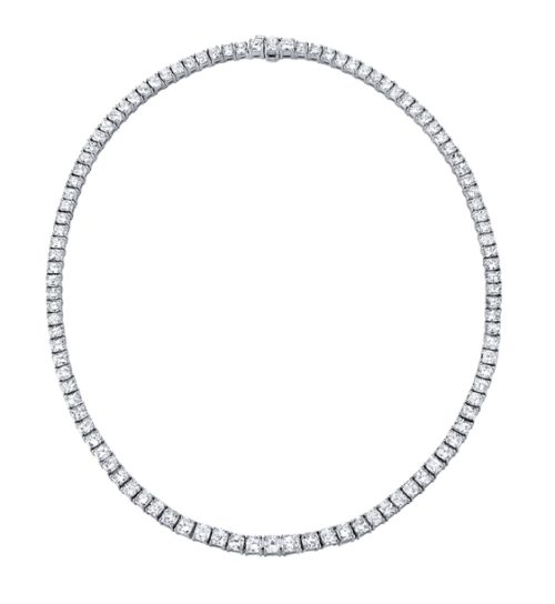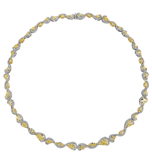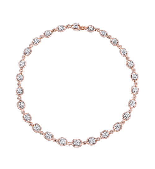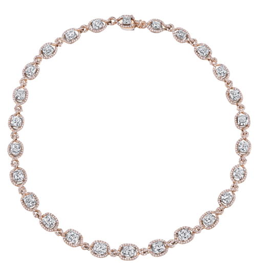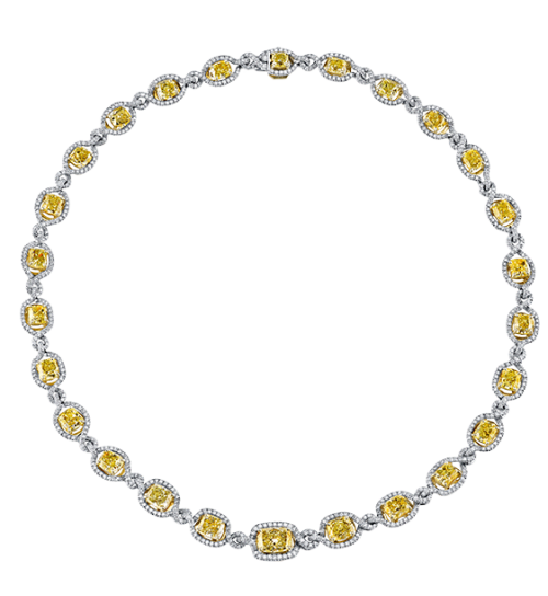 <p>Coveted Kotlar cushion cut diamonds are set in alternating yellow gold and platinum settings with pave backing details for a special twist on a classic necklace.</p>