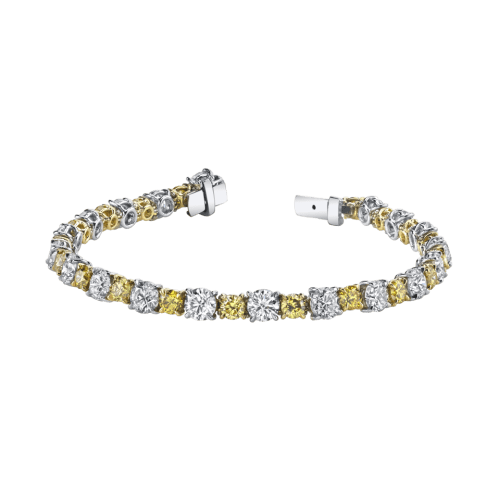 <p>You'll possess an otherworldly charm with the ethereal floating diamond bracelet by Harry Kotlar. Interlinking platinum rows help to suspend pear-shaped diamonds in breathtaking luxury. </p>