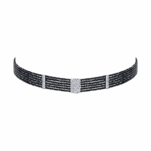 Stun with this elegant interpretation of the choker with Harry Kotlar. The multiple strands of black diamond beads sparkle against the artisan criss cross pave clasps on the choker.